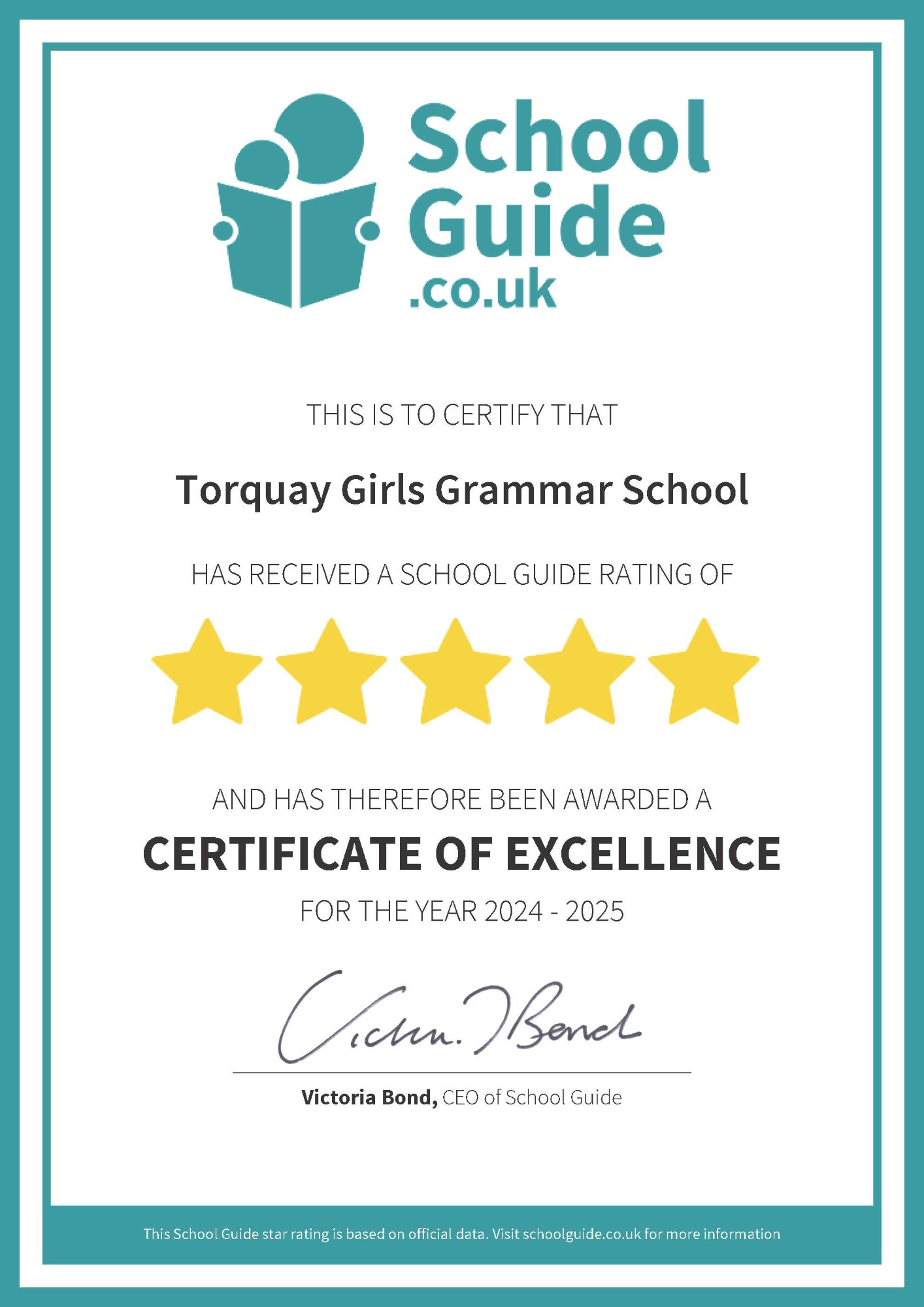 This places Torquay Girls’ Grammar currently as the only secondary school to have an Outstanding judgement in the whole of Torbay, Teignbridge. South Hams, Plymouth, West Devon and beyond, up to Exeter.