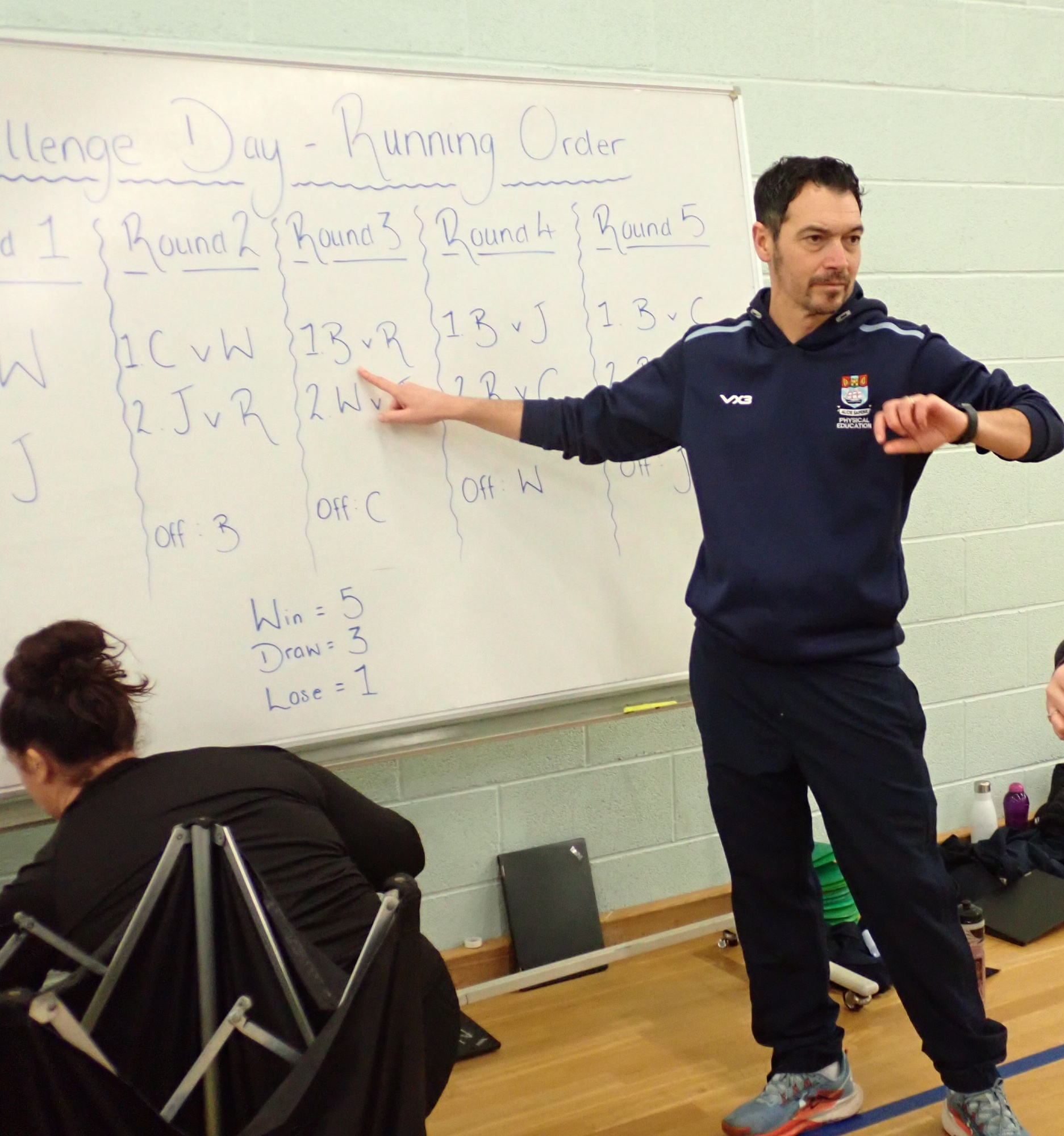 Ms Greenaway is waiting patiently in the hope that the ball doesn't come her way, whilst Mr Whittington is keeping a close eye on the clock - no unfairness in these highly competitive matches!!