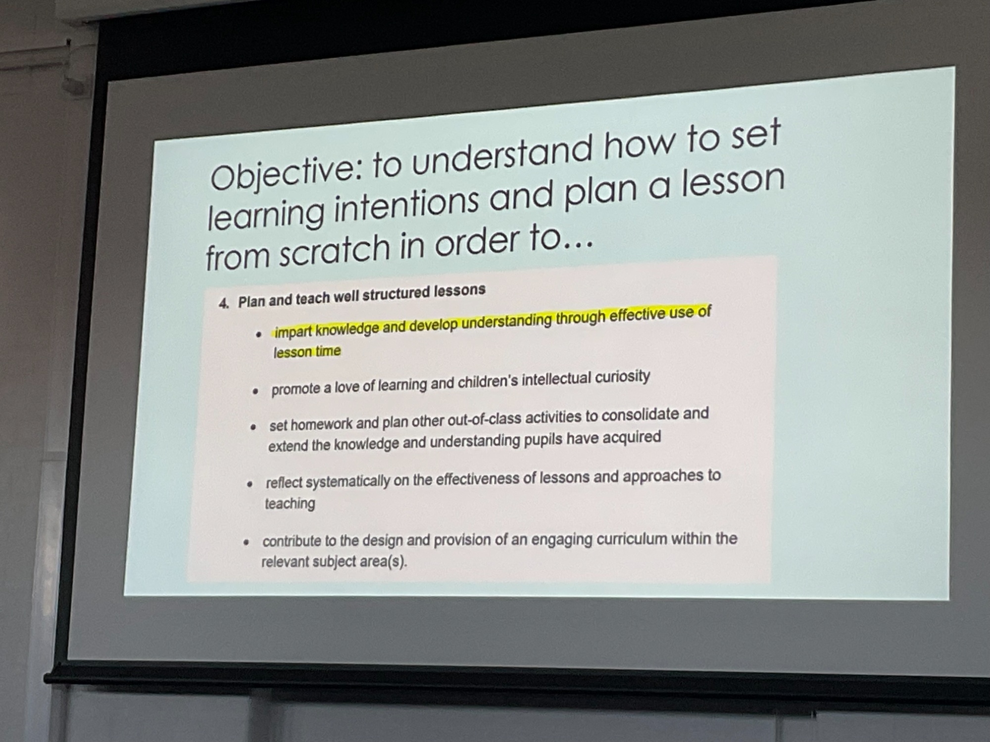 The trainees then received a valuable session on 'intention led planning' from Ruth Stacey before observing lessons in their subject areas, and using this in a practical planning task.