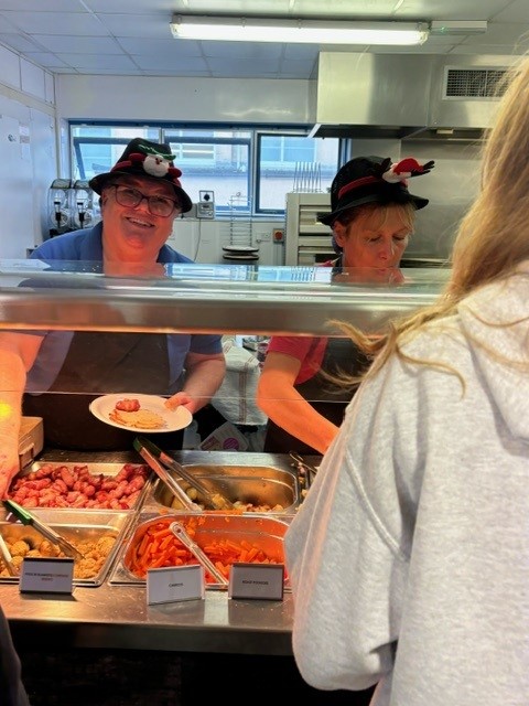 Christmas dinner, for example, is accompanied by festive songs & crackers, and it is customary for the Headteacher to serve the Christmas pudding.