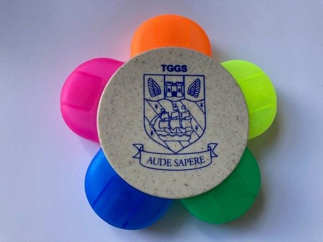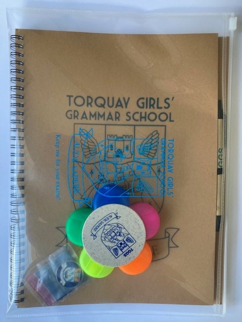 As a thank you gift, if you sign up as a supporter of our Trust, we are offering a FREE House Stationery pack. The pack includes an enamel house badge (worn on the blazer), recycled A4 Notebook and pen, eco-highlighter and zipper wallet for exams, all with the TGGS name or logo and in house colours.